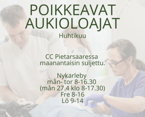 Poikkeavat aukioloajat ilmoitetaan instagramissa, @losvikadjurklinik